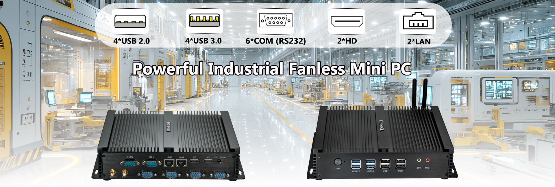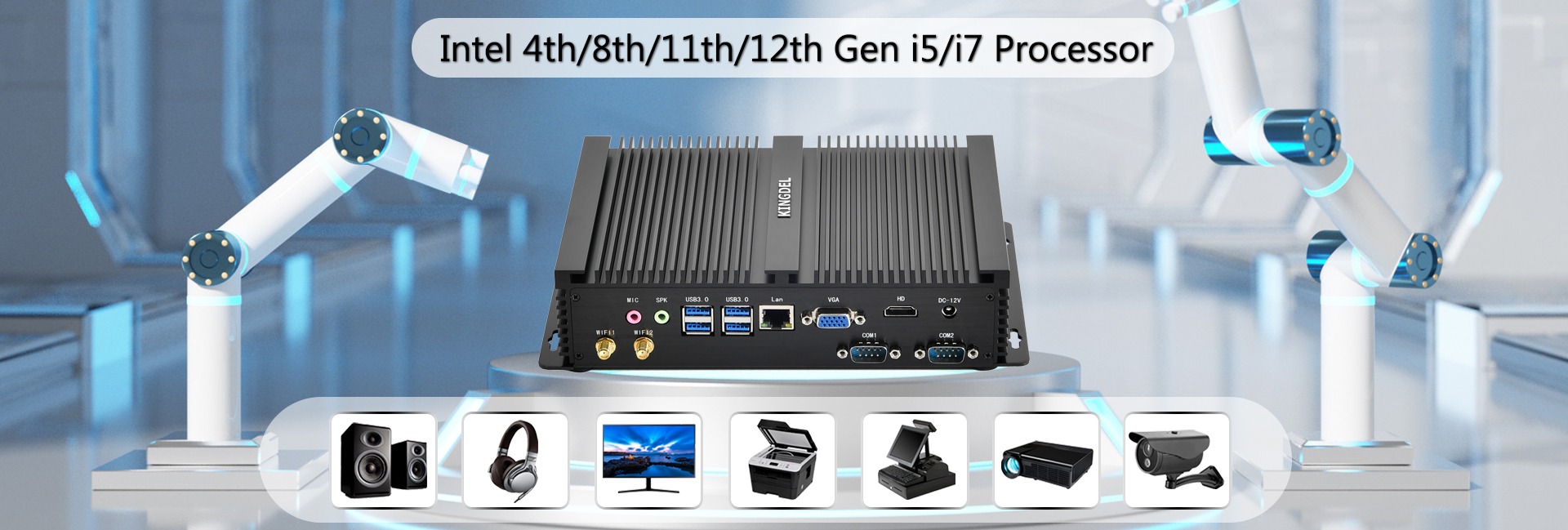 Kingdel Industrial Mini PC, Celeron 1007U/1037U, RAM 8GB/128GB SSD, 4X RS232 COM, 2x Gigabit NICS, fanless